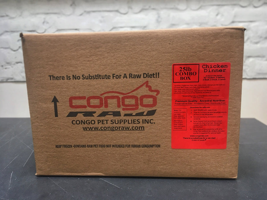 Congo Raw Chicken Combo Box (with Lamb, Beef, Duck, Salmon) - 25LB (8oz patties)