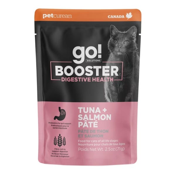 Go! Solutions Digestive Health Booster for Cats - Tuna & Salmon Pâté Recipe can be fed as a treat, a topper, or as a complete and balanced diet for cats of all breeds and life stages.