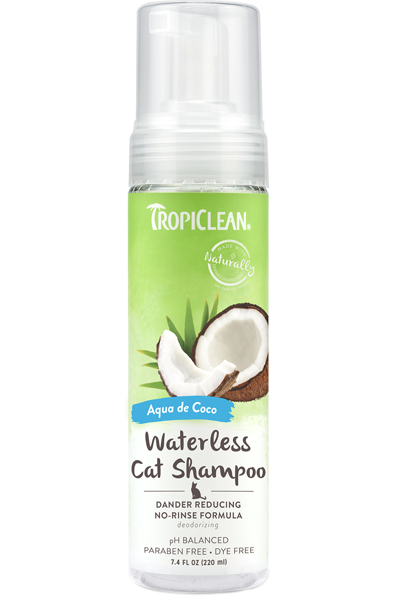 Dander is just part of the relationship we accept with our beloved frisky friends. Not anymore. TropiClean's dander Reducing Waterless Cat Shampoo helps freshen and reduce dander between baths, no rinsing required. Regular use of this mild coconut cleanser greatly moisturizes and reduces allergens, leaving both you and your feline happy and healthy.