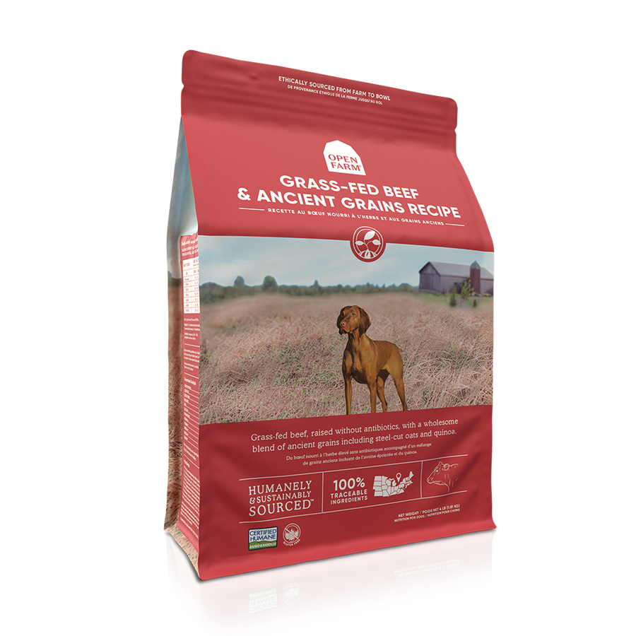 This protein-packed kibble is nutrient-dense to fuel your dog, thanks to a careful blend of humanely raised 100% grass-fed beef and ancient grains, such as steel-cut oats, quinoa, and chia seeds.