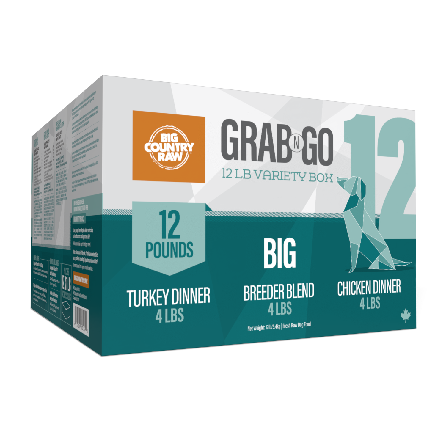 Big Country Raw's # 1 best seller! This is your go-to box for puppies or if your dog is new to raw! The Big Deal contains; Chicken Dinner, Turkey Dinner and Breeder Blend.