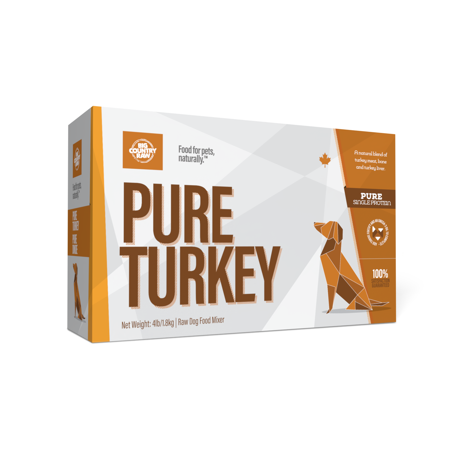 Each raw meal from Big Country Raw is hormone, antibiotic-free and is 100% sourced and made in Canada. Big Country Raw Pure Duck Carton contains four one-pound packs.