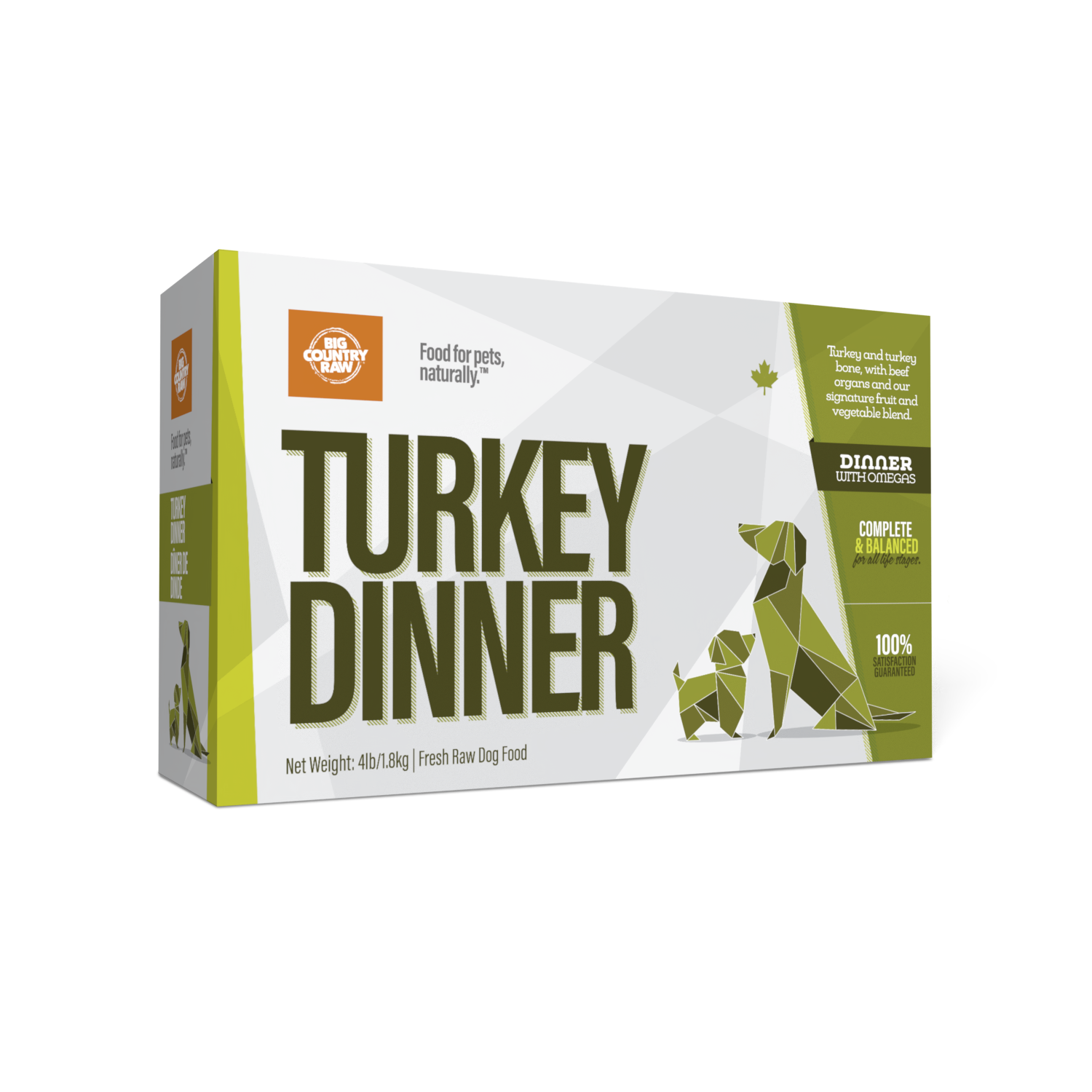 A Big Country Raw favourite with meaty Ontario raised turkey, that's a rich source of pure meat protein and perfect for dogs with sensitivity to chicken! Turkey is high in protein, making it an excellent choice for working and active breeds. With added organic fruits and vegetables that are packed with natural antioxidants and essential nutrients, this meal will soon be your dog's daily request!