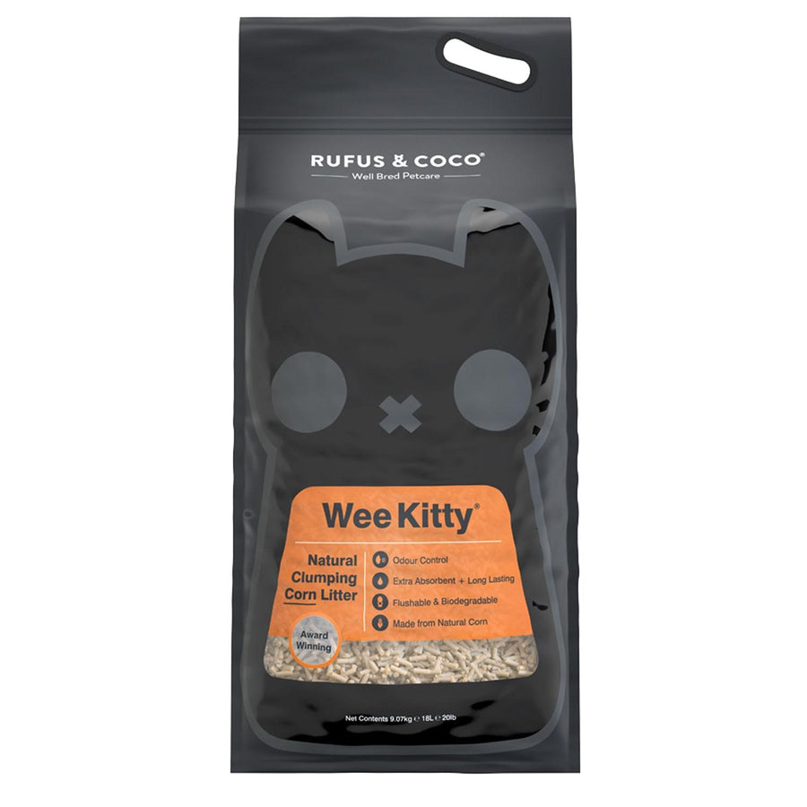 Wee Kitty Natural Clumping Corn Cat Litter is developed to deliver purffect extra absorbent, earth friendly, low dusting litter!