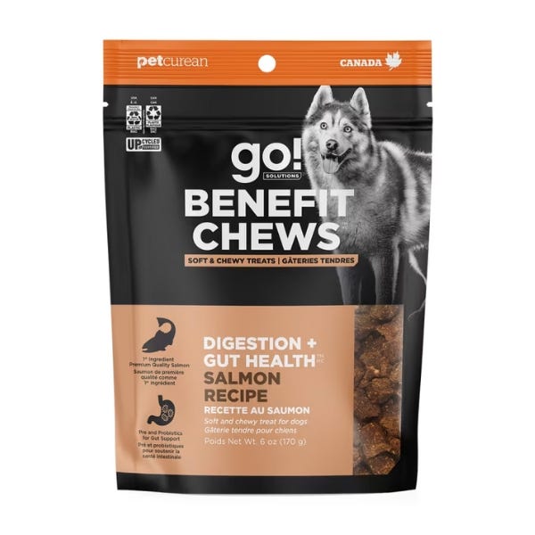 Go! Solutions Digestion & Gut Health Benefit Chews For Dogs - Salmon Recipe is crafted as a supplemental treat to enhance your pet's regular diet, perfect for occasional indulgence or as a special reward. Serve as a treat and ensure to reseal the bag to maintain freshness after opening. To keep your dog in tip-top shape, we recommend these treats make up no more than 10% of their daily caloric intake.