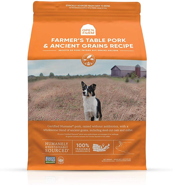- Uses humane pork with oats, quinoa, millet, pumpkin, coconut oil and more