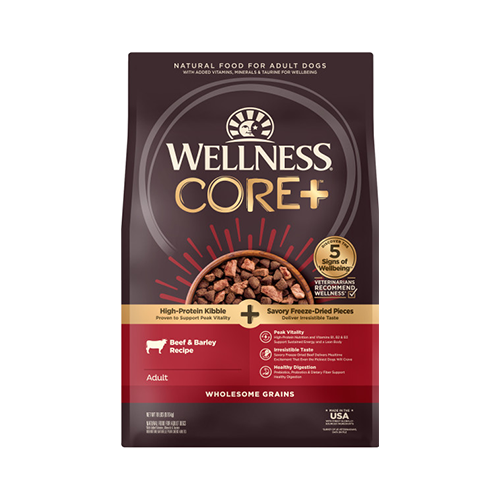 WellneAt their core, your dog instinctively craves raw animal protein. That’s why our revolutionary CORE+ recipes give your dog the pure protein, natural enzymes and full flavor they need to thrive. We thoughtfully prepare our CORE+ kibble and freeze dried bites to keep the ingredients in their purest form and ensure every mealtime is packed with nourishment and enjoyment.